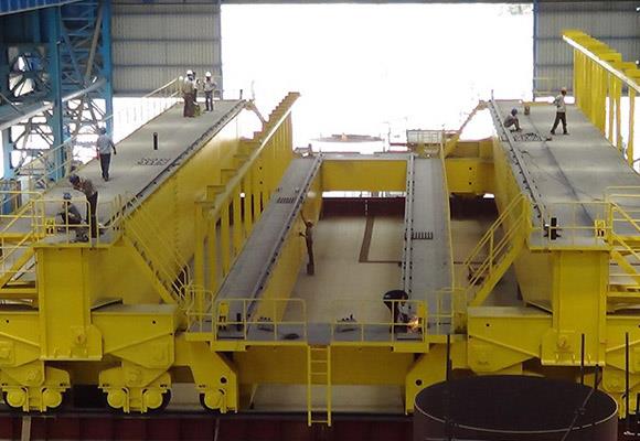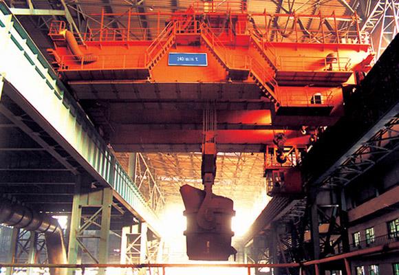 YZS modèle 125 / 32-320 / 80ton quatre poutres coulée grue est principalement utilisé pour le transport, la coulée et la charge en métal chaud du métal liquide dans le processus de fusion dans la fonte, atelier de fonderie, aciérie, fonderie, etc. le crochet principal accroché aux deux oreilles de la louche en acier avec un crochet à portique tandis que le aux. crochet se balancer pour verser. Le crochet standard pour ce type de grue est le crochet de bâti commun, si vous voulez employer la grue pour le levage de poche, elle pourrait être employée avec le crochet de portique.