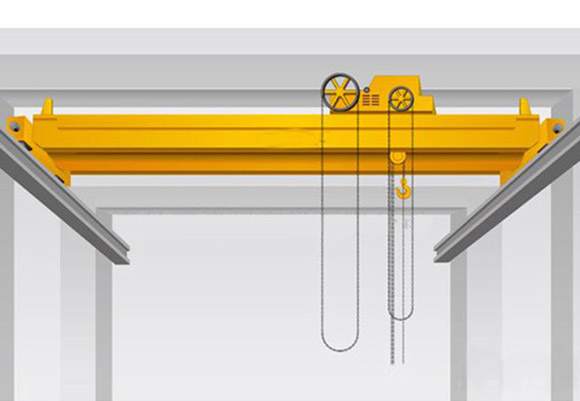 La grue à double poutre d'opération manuelle est composée du pont, du dispositif d'entraînement de chariot et de la voiture manuelle de monorail et d'autres pièces principales.